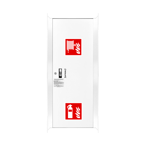 Hydrant wewnętrzny wnękowy z wężem półsztywnym DN 33mm o długości 20m wykonanie boczne z miejscem na gaśnicę. Otwory przyłączeniowe są zaślepione. Ciśnienie pracy od 0,2 do 0,7 MPa.