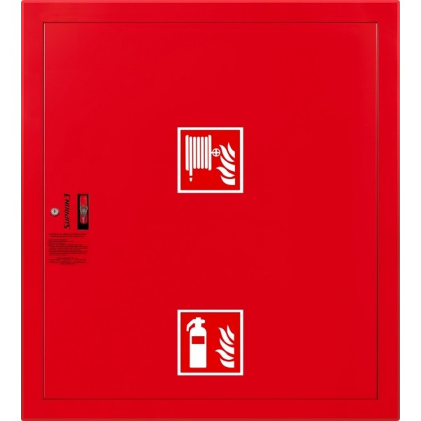 Hydrant wewnętrzny wnękowy z wężem półsztywnym DN 33mm o długości 20m w miejscem na gaśnicę pod zwijadłem. Wersja uniwersalna: możliwość podłączenia tego samego hydrantu w wykonaniu lewym lub prawym. Otwory przyłączeniowe są zaślepione i oferują sześć możliwości podłączeń: z boku, z tyłu, z góry. Ciśnienie pracy od 0,2 do 0,7 MPa.