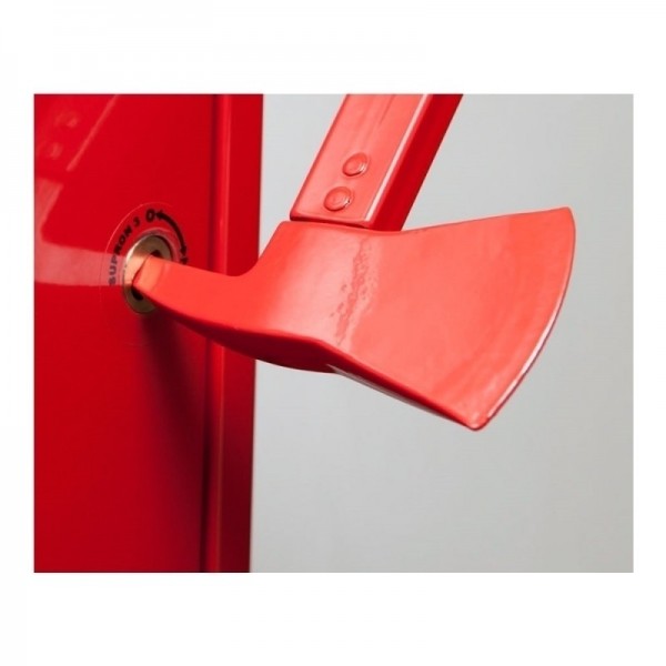 szafka wyposażona jest w specjalny zamek OTS – otwierany dziobem topora strażackiego w przypadku zabezpieczenia zaworów o których mowa w Rozp. MSWiA z dn. 7.06.2010r „w sprawie ochrony przeciwpożarowej budynków, innych obiektów budowlanych i terenów