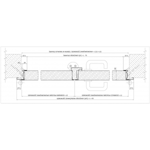zamek zapadkowo-zasuwkowy przystosowany pod wkładkę, klamka na szyldzie podłużnym z tworzywa sztucznego w kolorze czarnym, dwa zawiasy w tym jeden sprężynowy spełniający rolę samozamykacza, rygiel skrzydła biernego, regulator kolejności zamykania - RKZ