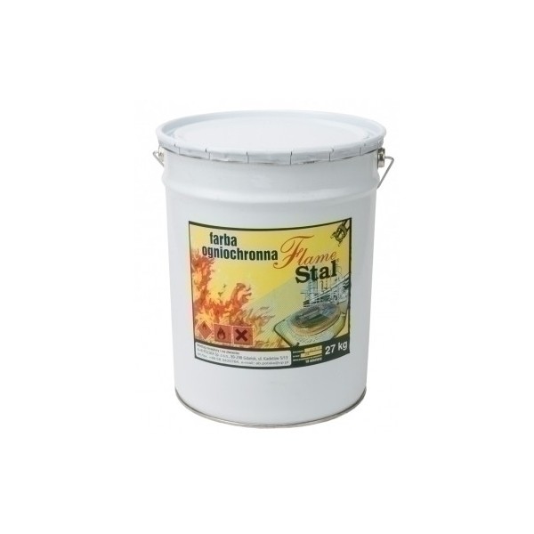 Zestaw wyrobów malarskich Flame Stal Fire Proof Solvent to trójwarstwowa pęczniejąca powłoka ogniochronna. Zestaw składa się z trzech warstw. Farba Flame Stal to rozpuszczalnikowa mieszanina żywic oraz środków pianotwórczych i przeciw palnych. Po aplikacji i utwardzeniu tworzy gładką elastyczną powłokę, odporną na wibracje i odkształcenia. Zestaw przeznaczony jest do trójstronnego lub czterostronnego zabezpieczania ogniochronnego elementów konstrukcji stalowych i stalowych ocynkowanych o profilach otwartych i zamkniętych wewnątrz i na zewnątrz obiektu dla uzyskania klasy odporności ogniowej R15, R20, R30 R60, R90. Farbę Flame Stal nakłada się na powierzchnie uprzednio zabezpieczone przed korozją farbą podkładową lub na przygotowane do tego powierzchnie ocynkowane.