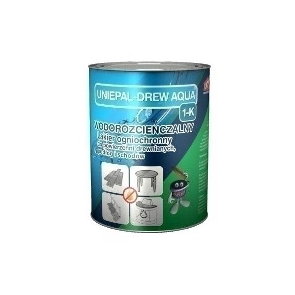 Wyroby pokryte lakierem poliuretanowym wodorozcieńczalnym UNIEPAL DREW AQUA 1-K w ilości co najmniej 200 g/m2, zostały sklasyfikowane w zakresie stopnia palności: elementy z drewna i płyt OSB o grubości co najmniej 12 mm - jako niezapalne (B-s1.d0), posadzka z drewna sosnowego o grubości co najmniej 12 mm- jako niezapalna (Bfl-s1).
