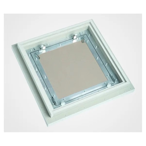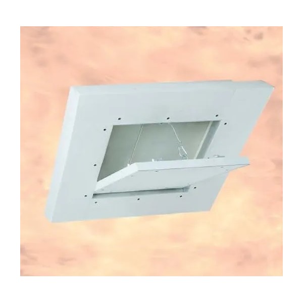 Klapa rewizyjna przeciwpożarowa przeznaczona do zabudowy w sufitach nienośnych z płyt gipsowo-kartonowych o klasie odporności ogniowej EI-30, EI-60, EI-90 EI-120. Żądane właściwości przeciwpożarowe uzyskane poprzez tylne obłożenie z ramą z blachy stalowej na całym obwodzie.